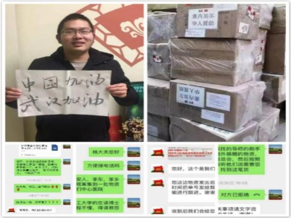 李东,家住黄冈市红安县,毗邻武汉,正处于此次疫情的“重灾区”。面对来势汹汹的疫情,同其他地区一样,红安也出现了医疗防护物资极度匮乏的局面,各大医院相继向社会发出医疗物资募捐的求助。人民群众的需求就是我们共产党员奋斗的目标,他积极向导师马宏宾反映了情况,马宏宾协助联系了海内外人士,为红安等湖北地区募集了总价值十五万人民币的医疗防护物资。目前首批非洲塞内加尔华人捐赠的物资已经抵达中国,并分批次发往各个目的地,部分物资已经签收。