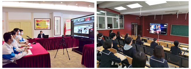 “大中学生联学重要讲话、回信精神”环节,陕西西安铁一中学、高新一中、河北石家庄二中师生代表通过演讲、诗朗诵、优秀事迹报告等形式展示了青年师生的抗“疫”风采。