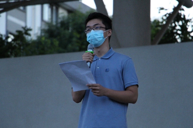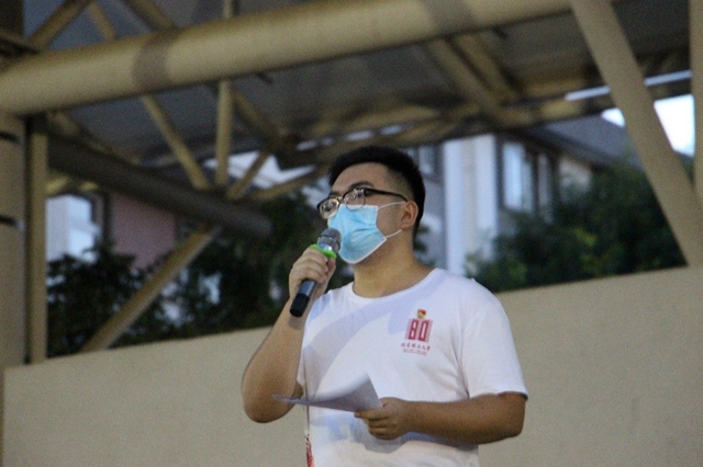 “犹记得去年此时,在国庆活动的筹备保障中,北理工共有5058位师生参与了阅兵仪式、群众游行、广场合唱、联欢盛会等7项任务中……参与广度、深度均为北京市高校之最。在国庆系列活动中,我校师生用汗水和毅力谱写出了与国家同频共振的红色史诗。”作为国庆70周年庆祝活动合唱方阵的一员以及首都教育系统服务保障国庆活动宣讲团的一员,来自求是1823班的毋绍博分享起去年参与国庆庆祝活动的点点滴滴,仍然十分动情。现场的听众随着他的讲述,仿佛又一次回到了国庆七十周年阅兵活动的现场,仿佛能一同见证那壮观威严的装备、整齐划一的方阵、和属于北理学子那最美的芙蓉花束及铿锵的步伐。