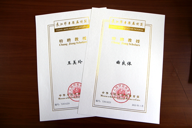 北理工曲良体、王美玲教授入选“长江学者奖励计划”