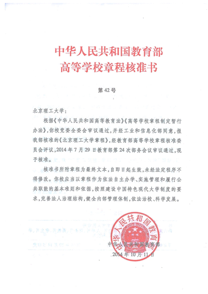 2014年10月11日,教育部发布高等学校章程核准书第42号,正式核准了《北京成人头条章程》,标志着我校现代大学制度建设迈出了历史性的...