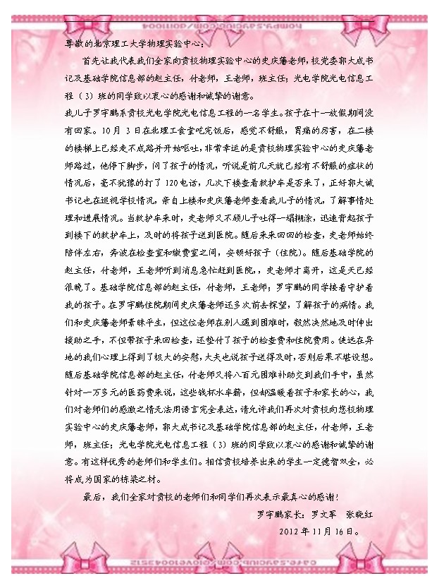撰稿人:刘锴 摄影人:吴晓青 编辑:孙红权 予人玫瑰,手有余香,做一名快乐的志愿者。2012年11月18日上午,北京理工大...