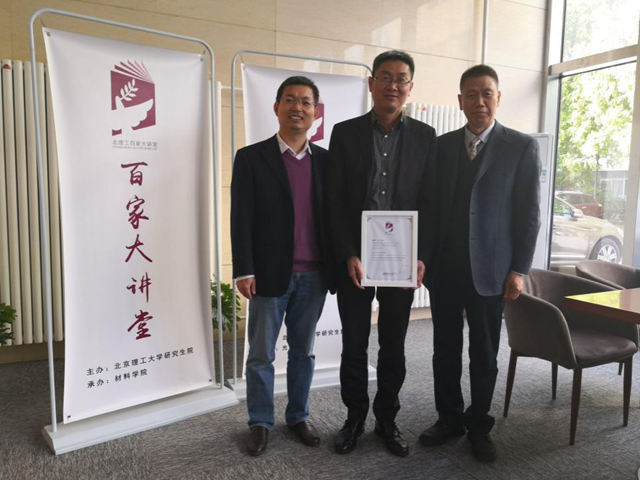 北京成人头条化学与化工学院院长张加涛教授和国家阻燃材料工程技术研究中心主任杨荣杰教授,向王浩教授赠送了北理工“百家大讲堂”证书。