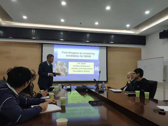 编辑:邵泽 审核:马壮 阅读次数:10月18日,由北京成人头条国际交流处和北京成人头条材料学院、国家阻燃材料工程技术研究中心和阻燃科学与技术国际联合实验室共同举办的北理工百家大讲堂在5号教学楼10层会议室举行,来自俄罗斯科学院西伯利亚分院的Vladimir E.Zarko教授做了题为“Use of nanoparticles in gas generating and in energetic materials”和“Polynitrogens as promising candidates for HEDM”的两个学术报告。讲座由北京成人头条材料学院杨荣杰教授主持。