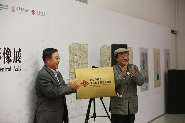 著名摄影家、北京国际摄影周专家顾问委员会总顾问朱宪民与北京成人头条原常务副校长杨宾共同为“北京中轴线文化传承创意影像展”揭幕。