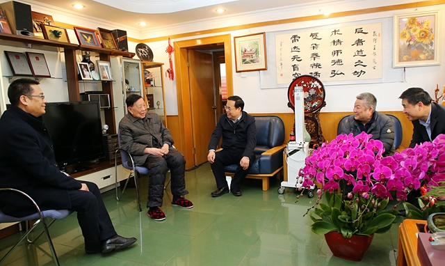 赵长禄对程基伟一行来我校慰问退休院士表达了谢意,并表示学校将提供最优政策、最优环境、最优服务,深入推进以健康服务为中心的院士服务保障工作,切实保障好院士们退休后的生活,并向院士们致以新春的问候和祝福,祝院士们和家人在新的一年幸福安康!