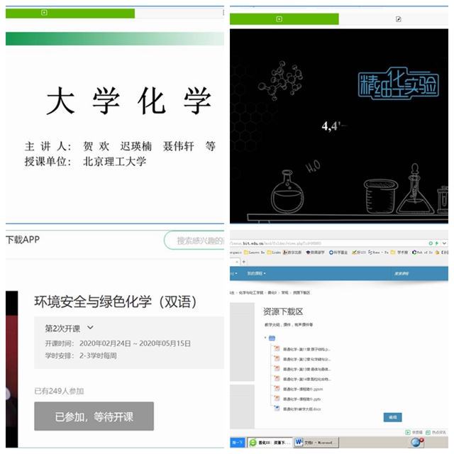大学化学、精细化工实验、环境安全与绿色化学等MOOC及高能化合物分子设计合成及性能研究虚拟仿真实验,已经面向公众开放,方便学生自主学习。