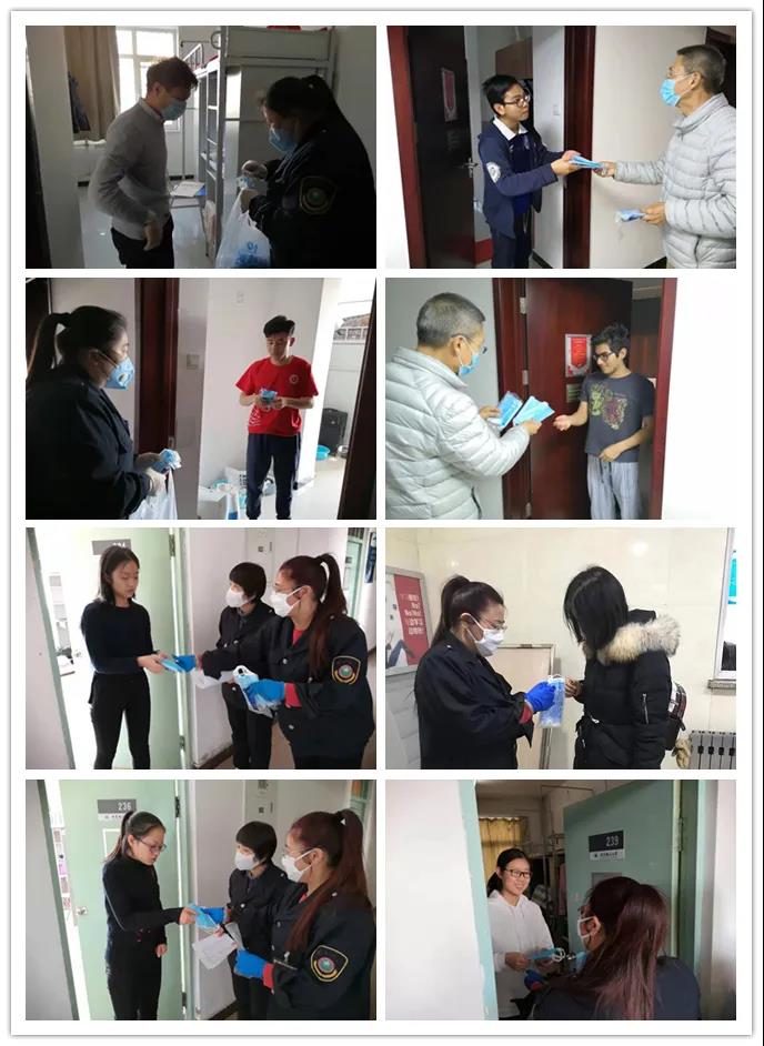 为做好防控工作,以师生健康为本,良乡校区集中安排寒假期间留校学生在静园A栋和留学生公寓单人单间居住,物业服务人员每天均对留校学生测量体温、记录信息,并对公共区域进行日常消毒,还上门为学生配发口罩,宣传科学防护知识,通知学校心理咨询中心联系方式,帮助留校学生做好身心健康管理。