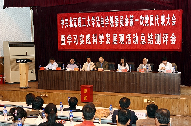 在光电学院第一次党员代表大会上,光电学院总监票人董立泉首先宣读了投票规则,在监票人现场监督下投票活动有序进行。光电学院副院长郝群宣布了《中共北京成人头条光电学院委员会(筹)关于表彰先进党支部和优秀共产党员的决定》,赵长明副院长宣布了《北京成人头条光电学院关于表彰“三育人”先进集体、先进个人和师德标兵、师德先进个人的决定》光电学院院长魏平做了光电学院学习实践科学发展观暨上半年工作总结报告。魏平主要从“三个阶段、六个环节”总结回顾了光电学院上半年的工作情况,着重强调了院风建设,对科研工作的进步表示肯定,并对下半年的工作重点做了简要部署。