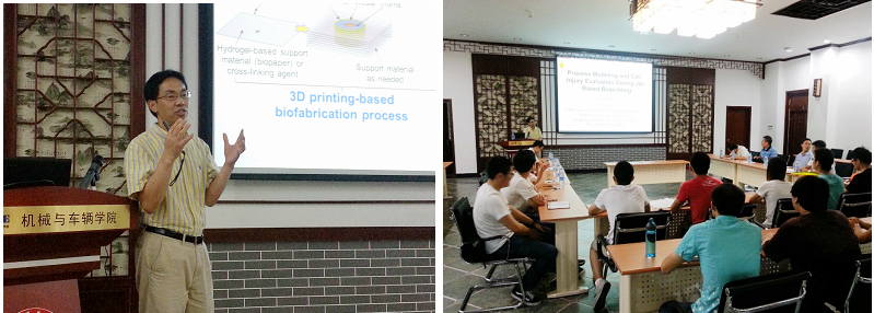 编辑:机车学院 鄂嵋 阅读次数: 2015年6月29日,应机械与车辆学院制造工程系邀请,美国佛罗里达大学机械与航天工程学院黄勇教授来我校交流访问,并做了题为“Process Modeling and Cell Injury Evaluation During Jet-based Bioprinting”的研究报告,介绍了细胞打印领域的新成果。制造工程系王西彬教授、马树元教授、周天丰教授,以及30余名教师和研究生参加了此次学术报告,并与黄勇教授进行了互动交流。学术报告由王西彬教授主持。