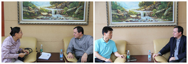结束参观实验室后,Landers教授分别与我院张发平、张敏弟教授进行了一对一的交流,通过这种新颖的会谈方式,就双方学术、科研等方面的进展进行分享,并就学院与密苏里科技大学交换生的事宜进行了洽谈。