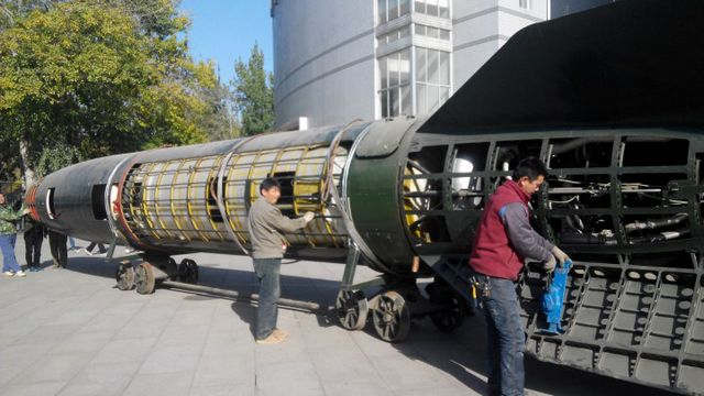 11月20日,北理工宇航学院根据学校建设整体工作的安排,进行实验室搬迁,当重达十几吨的导弹被放在了专用滑轨车上,缓缓地推出实验室,穿过校园的时候,引发了网上网下的一片关注和热烈讨论,毕竟在平日书声琅琅的校园中,突然惊现一枚庞然大物的导弹,还是不多见的。关注的师生们一边惊叹于导弹的庞大与精致,也产生了不少疑问:“这枚导弹是什么来历呢”“这枚导弹和北理工之间有什么联系呢?”“导弹上面怎么开了这么多小窗口呀?”带着这些疑问与好奇,记者采访了宇航学院荣吉利副院长和党委宣传部副部长、校史馆馆长王民。