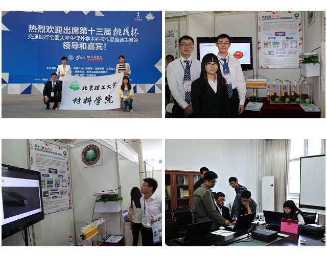 2013年10月13日至17日,在江苏省苏州大学举办的第十三届“挑战杯”全国大学生课外学术科技作品竞赛决赛落下帷幕。经过紧张、激烈的封闭评审、现场问询、公开答辩等环节的角逐比拼,材料学院推选的参赛作品《基于新型铜铟硫纳米晶的白光LED与光转换膜的制备和应用》,荣获本次挑战杯全国一等奖,受到了评委和专家的一致认可和赞扬,为学校赢得了宝贵的分数与荣誉。这是继2011年材料学院张学同老师指导的杜然、徐洋子同学的作品《导电高分子水凝胶的控制合成与性能研究》在第十二届 “挑战杯”全国大学生课外学术科技作品竞赛中获得全国二等奖后,材料学院在“挑战杯”赛事的新突破。
