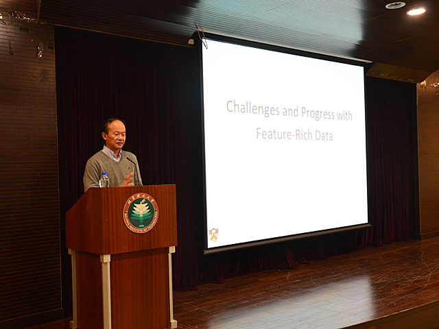 2013年12月23日上午9时,计算机学院邀请来自美国普林斯顿大学的李凯教授,在研究生院101报告厅做“Challenges and progress with feature-rich data”主题讲座,学院部分师生共同聆听本次讲座。讲座由计算机学院副院长牛振东老师主持。