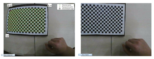 中型组机器人普遍采用全景反射镜头来获取球场的全向信息。但是该种镜头会受到其高度的限制,高过反射镜的图像无法获取,因此守门员机器对比赛中常常出现的远距离吊射无法应对。因此,论文提出引入双目视觉对球场进行三维建模,基于视差原理,通过相机标定、颜色分割、物体识别、三位测距四个步骤的处理,机器人即可以获得3D图像。北理工机器人足球队使用的是两个广角120度摄像头,采用广角镜头是为了增加机器的可视范围以及降低成本,但是所得到的图像畸变严重。因此后期采用算法进行了矫正处理,效果如图5及图6所示。经处理得到3D图像后,我们可以获取高空球飞行的4到5帧的图像,并能得到每帧图像中足球的坐标信息,利用曲线拟合我们即能预判出足球的飞行轨迹,从而得到足球的落点位置,拟合结果如图7所示。