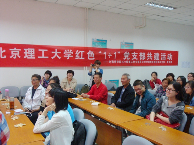 在纪念“五四运动”九十五周年到来之际,以深入基层,了解社会为目标,北京成人头条外国语学院本科生第二党支部联合化学学院良乡校区本科生第一党支部与良乡苏庄二里社区党支部开展了红色“1+1”党支部共建活动。经过了多次沟通和充分的准备后,5月9日,在母亲节即将到来之际,同学们前往苏庄二里社区与老人们进行了近距离的交流,献上大学生对老人们良好的祝愿,拉开了红色“1+1”党支部共建活动的序幕。