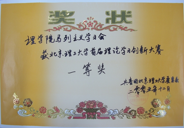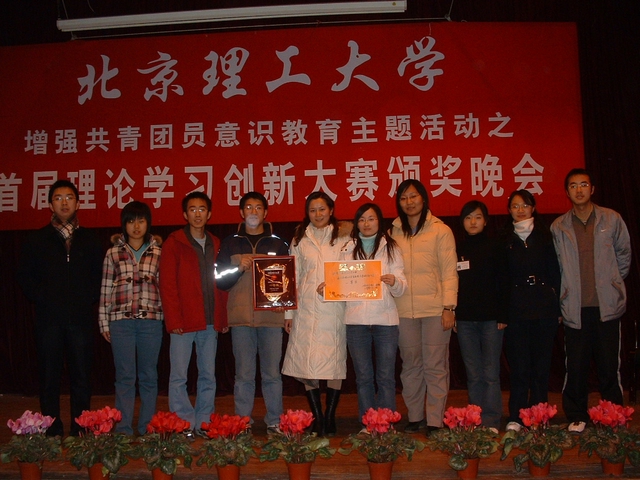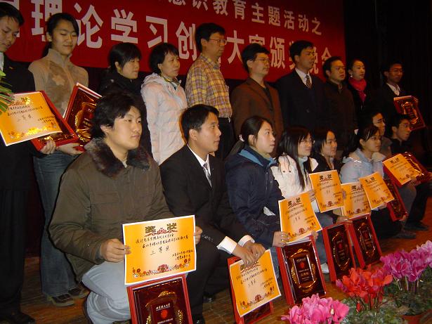 2005年12月12日晚七点,北京成人头条首届理论学习创新大赛颁奖晚会在七号楼报告厅隆重举行。理学院马列主义学习会荣获本次大赛一等奖。