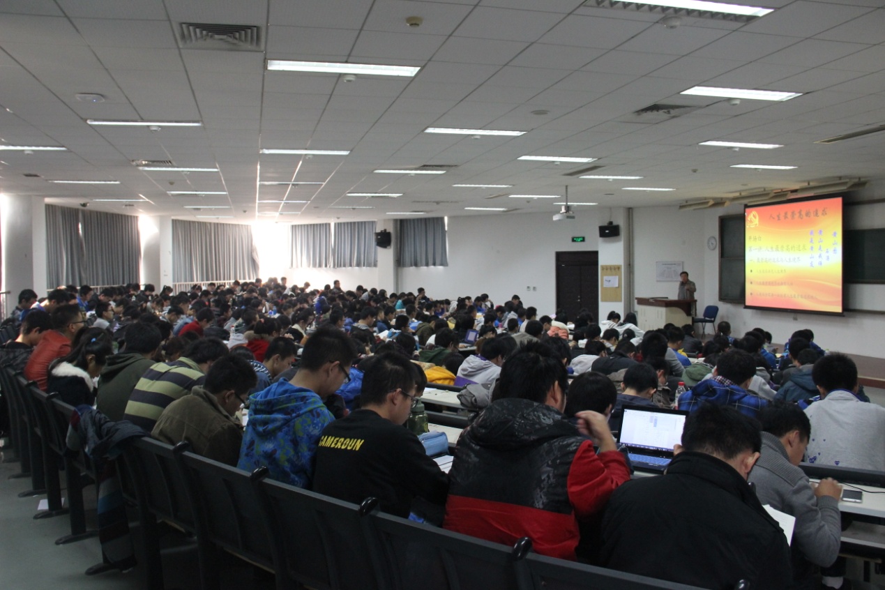 党课中董嵩斌教授引经据典,语言风趣,对当下各类热点时事进行了深刻剖析,引发了同学们的认真思考。每当党课结束时,整个教室都会响起经久不息的掌声。