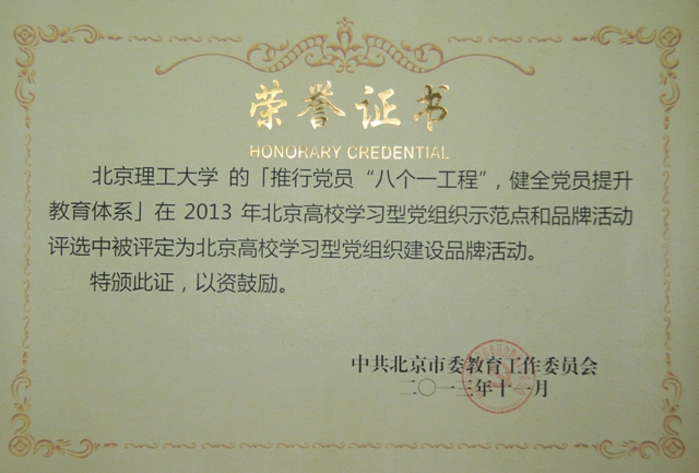 北理工在2013年北京高校学习型党组织建设示范点和品牌活动评选中勇创佳绩
